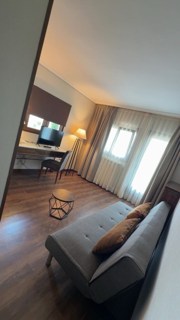 Todas las habitaciones cuentan con apertura electrónica, terraza exterior, calefacción, teléfono, Smart TV 32″ con acceso a plataformas digitales, baño completo y wifi. No se admiten animales, pero disponemos de casetas para perros, como servicio gratuito para nuestros clientes. El hotel dispone de aire acondicionado únicamente en las zonas comunes.