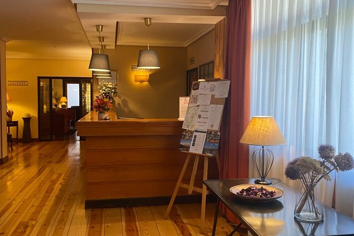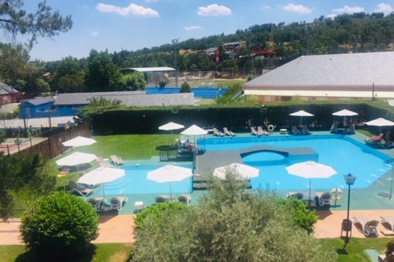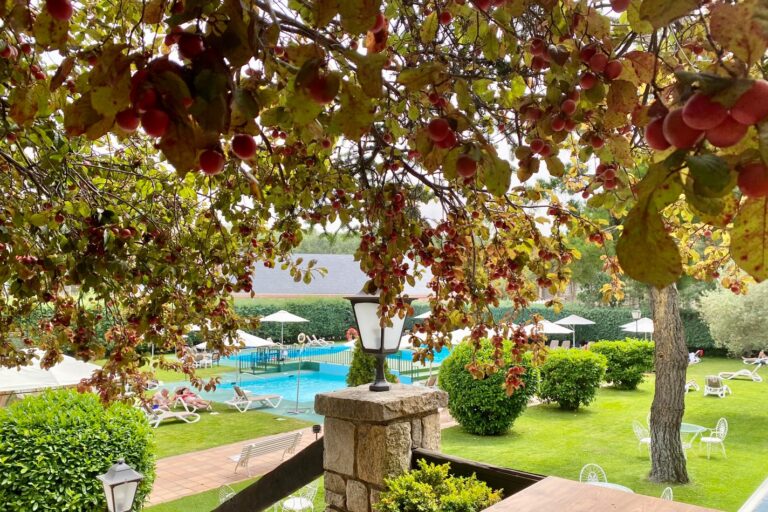 Hotel rural con jardines, spa, restaurante - comedor, cafetería, gimnasio. Totalmente equipado para una estancia de varios días en la sierra de Madrid.